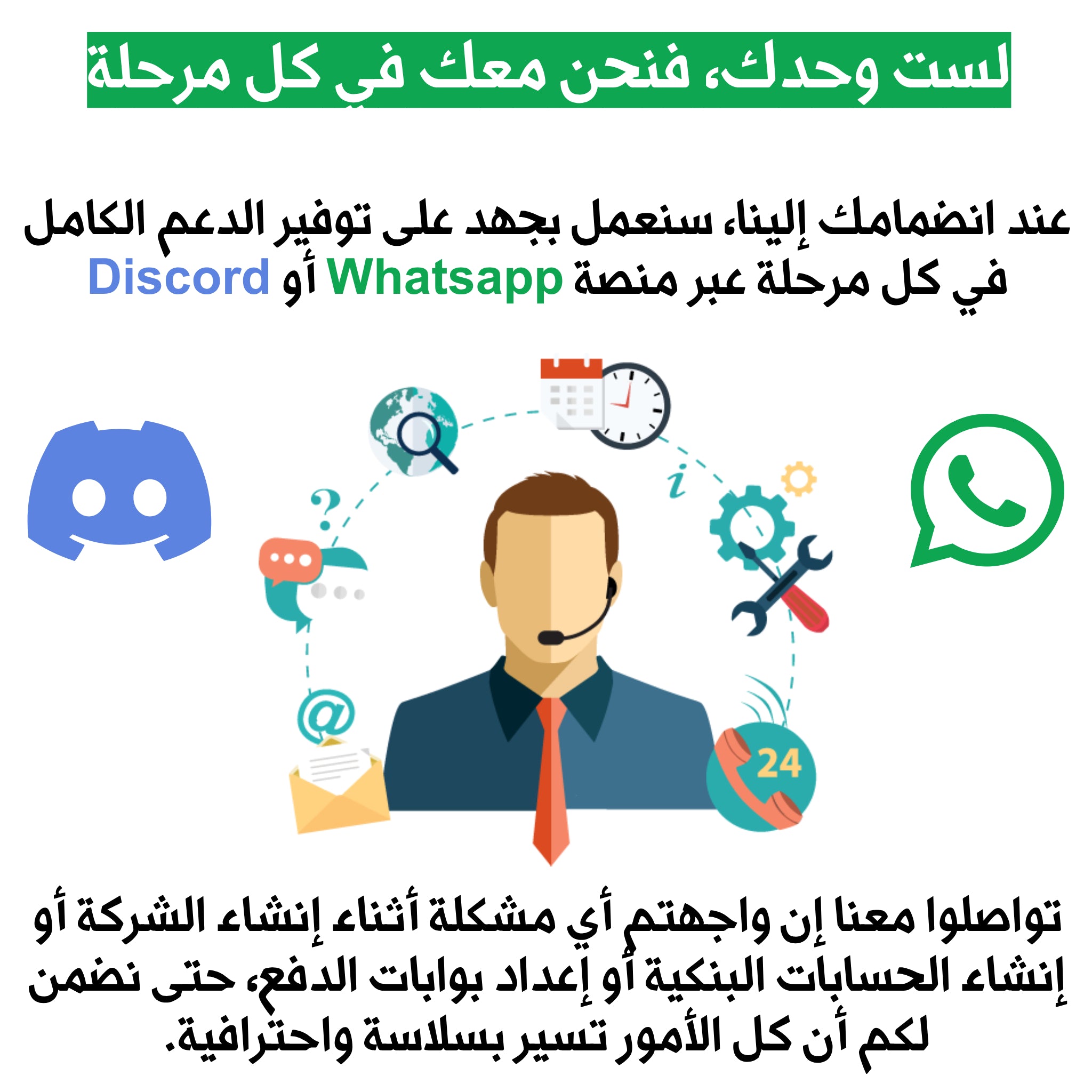 نعم، ستحصل على دعم مباشر وشخصي لمساعدتك في أي خطوة أو استفسار سواء في إنشاء الشركة أو فتح الحسابات أو تقديم الإقرار الضريبي.